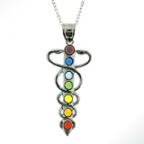 Multi-Color Crystal Inlayed Chakra Entwined Serpents Pendant Necklace - 58x26mm Pendants - 18'' Necklace Included - Purple, Blue, Aqua, Green, Yellow, Orange, and Red Crystals